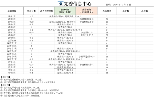 通知 | 1月3日军训通讯稿班级排名情况公示