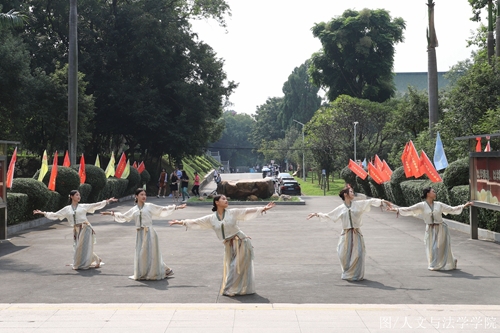 同时,我院民舞队在学院广场进行了表演展示。舞队队员们以优美的舞姿热烈欢迎校友们的到来,博得大家阵阵喝彩。在欢乐的氛围中,活动拉开了帷幕。