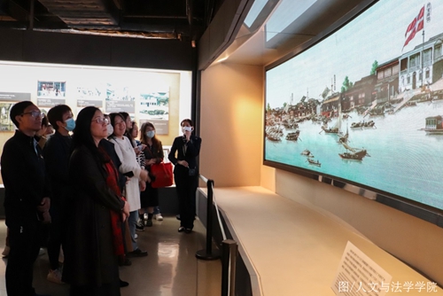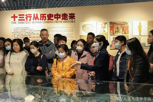 广州十三行博物馆设有“清代广州十三行历史展”、“王恒、冯杰伉俪捐赠文物专室陈列展”等展览,师生们参观了珍贵的历史文献史料和文物,回顾了十三行贸易口岸近百年历史的景况,了解了清代广州的繁荣和活力以及市井百姓的生活风貌,感受到粤商敢为人先、包容务实、锐意进取的精神以及岭南人海纳百川的海洋文明的开放理念。