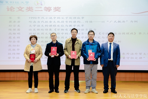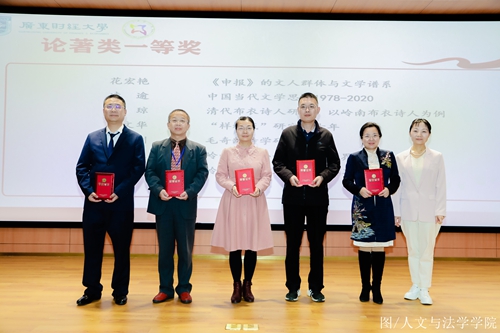 本次会议评选了2018-2023年度广东省写作学会优秀成果,我院中文系教师王丽娟教授的论文《百年来说唱文艺研究的回顾与展望》、贺国强教授的论文《晚清诗界文学经世的“外援”与“内求”——以陈衍、王闿运的诗学分歧为基点》分别获论文类优秀成果一等奖、满忠训博士的论著《毛奇龄诗学研究》获论著类优秀成果一等奖、孙宗美副教授的论文《大学语文的课程定位与教学改革》、陈保菊老师《论吴新纶诗集〈万物有灵〉的语言魅力》分别获论文类优秀成果二等奖、白海英副教授主编的教材《大学语文》、关溪莹副教授主编的教材《应用文写作》分别获教材类优秀成果二等奖、刘秀丽博士的文学作品《少华山啸》获文学作品类优秀成果二等奖。