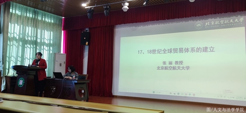 2023年12月2829日,我院邀请了美国加州大学洛杉矶分校经济史博士,北京航空航天大学人文学院经济系教授、博导张丽教授进行学术交流。12月28日下午张丽教授为我院师生做了题为“17、18世纪全球贸易体系的建立”学术讲座,本次讲座是历史系“中国史名家讲坛”第十一期由学院赵艳萍副院长主持,参加讲座的师生近百人。
