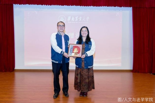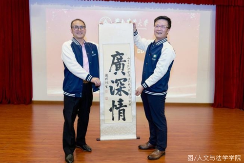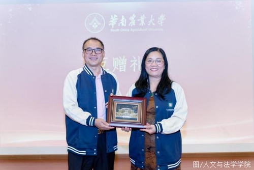学院党委书记张晖与学院广州联谊会会长骆毛燕互赠广州联谊会成立贺礼