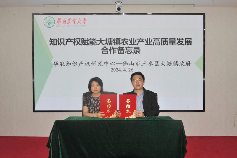 为助力知识产权赋能百千万工程、促进知识产权人才培养与成果转化,知识产权研究中心分别与佛山市三水区大塘镇政府、广州恒成智道信息科技有限公司签署合作备忘录,以期未来在农业知识产权领域有更深入的合作。
