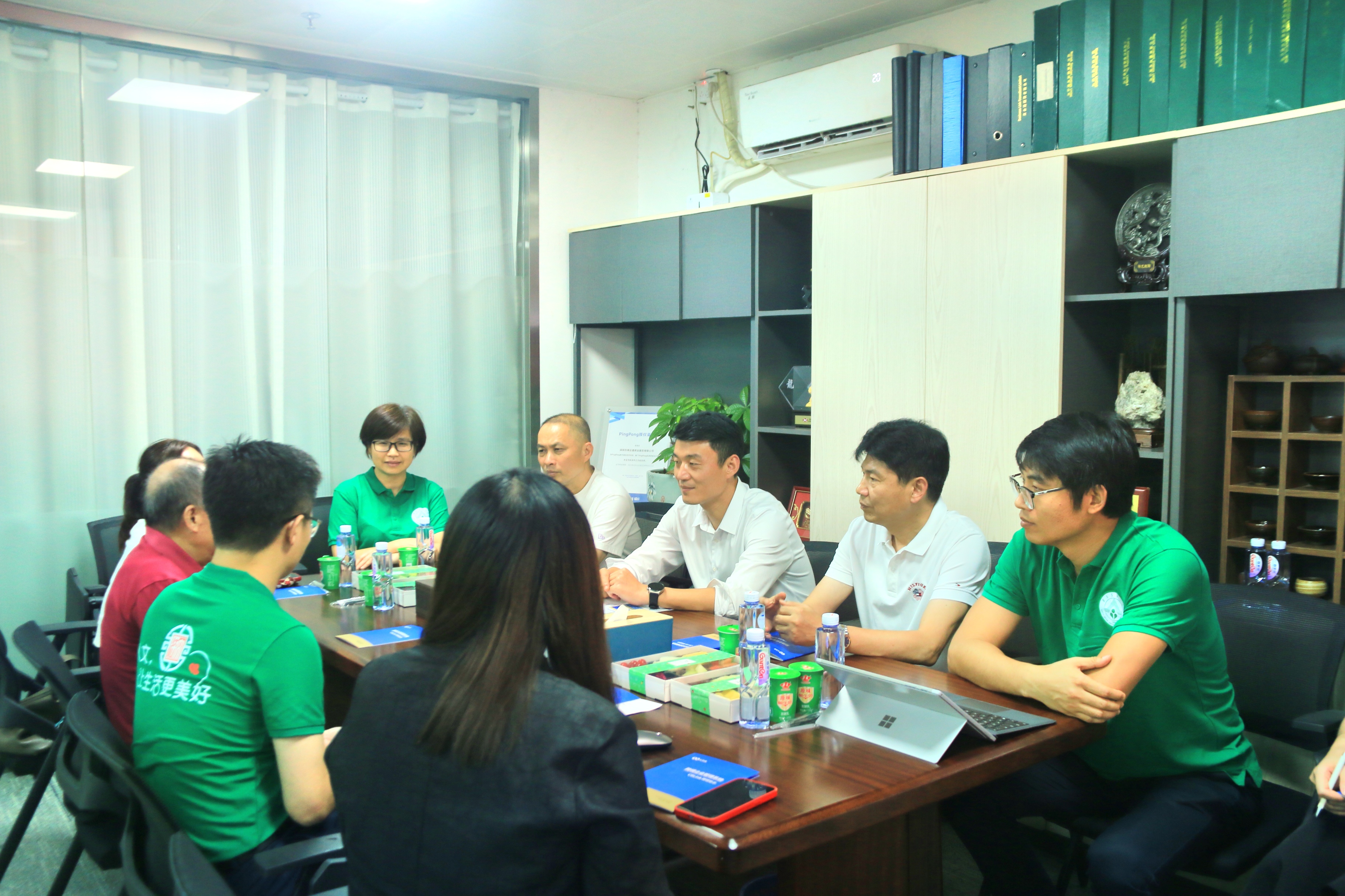 在商企通公司,陈晓东书记一行与校友们围绕着校友会的建设进行深入探讨。深圳校友分会荣誉会长唐桂章向陈晓东书记一行的到来表示热烈的欢迎,并且指出校友与母校之间应当做到时时联络、事事联系,深圳校友会时刻秉持着创新、发展的理念做好校友服务工作。商企通公司的负责人、人文分会会长林焕新简要介绍了公司的基本情况,并提出了人才校企联培的构想。陈晓东书记和杨正喜执行院长认真听取了校友关于校友会建设和人才校企联培构想的建议,并表示只有凝聚校友力量,才能共同推动校友校企和人才培养的高质量发展。