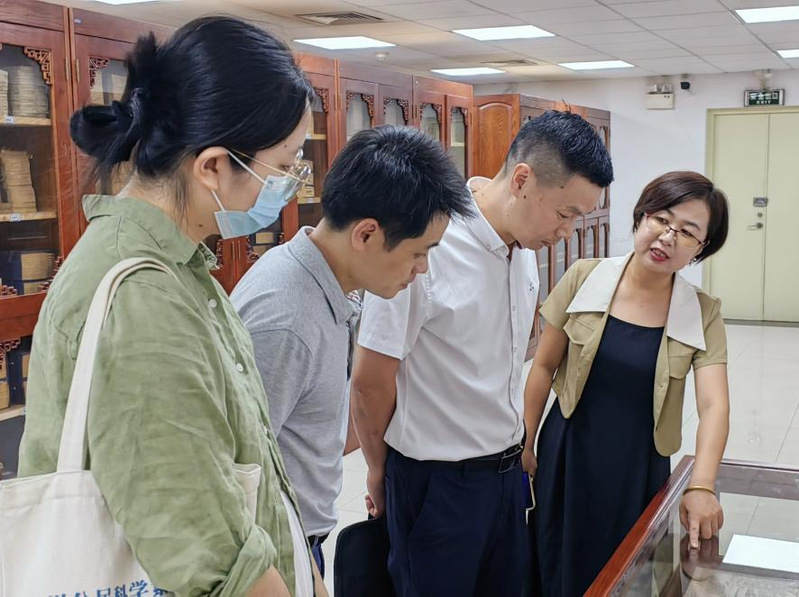 座谈交流后,在倪教授和杨柳老师陪同下,鲁才浩处长一行首先参观了农史研究所特藏书库。在书库中,鲁处长一行品赏了各种版式、内容的珍贵农业历史文献,对之大为赞叹,并欣然题词。随后,鲁才浩处长一行在倪教授的陪同下到档案馆查阅相关农业资料。