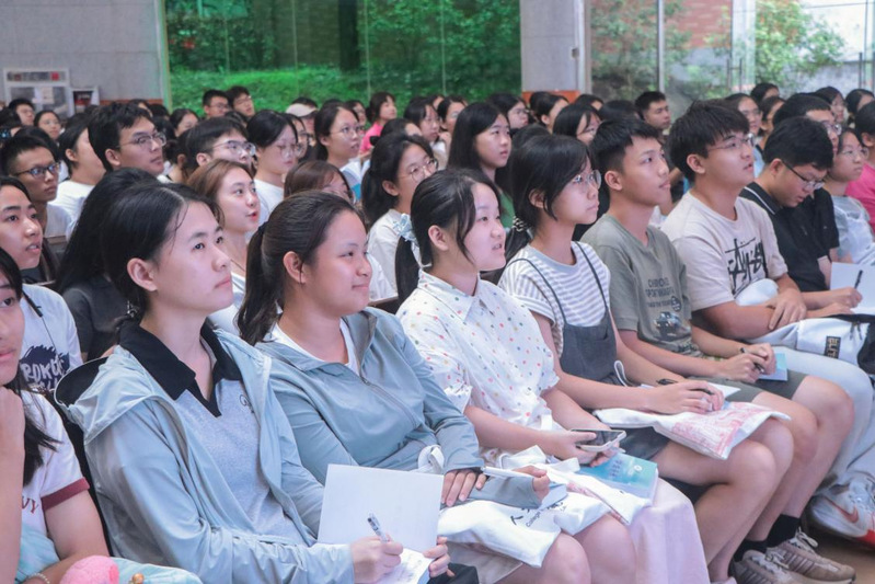 第三场校规校级教育讲座由刘鑫老师主讲。在校规校纪教育环节,刘鑫老师对学校的规章制度进行了详细解读,包括请假制度、选课制度等等。他特别强调了学校对于抄袭、作弊等学术不端行为的“零容忍”态度,要求同学们守好底线,自觉遵守校规校纪,养成良好的学习习惯,杜绝各种学术不端行为,共同营造严谨、有序的学习环境。本次校规校纪教育讲座,使全体新生在入学之初就建立起对校规校纪的正确认识,增强了同学们对学校的归属感和荣誉感。