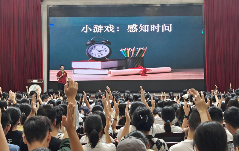 讲座伊始,卢小圣老师对同学们的到来致以最真诚的欢迎。随后,他以“追寻”作为切入点,引领新生们深入思考职业生涯规划的重要意义。他指出,青春是最为宝贵的资本,不应畏惧失败,而要勇于尝试更多的可能性。同时,他鼓励同学们紧跟时代步伐,明晰自身专业方向的发展前景,并尝试依据个人兴趣与社会需求,制定出合理的学业与职业规划。在讲解规划时间安排的环节中,他通过一个简单的感知时间小游戏,与同学们展开了积极的互动交流,助力同学们正确认识到管理时间的必要性,从而更科学、高效地规划自己的职业与学涯。
