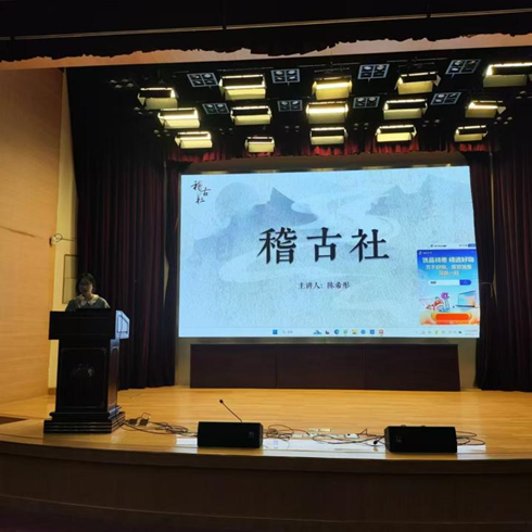 随后,历史系实践教学中心下属优秀社团“稽古社”的成员介绍了社团的性质、构成、活动风采以及优秀社团成员,号召新生积极投身校园社团活动,为稽古社输入新鲜血液。