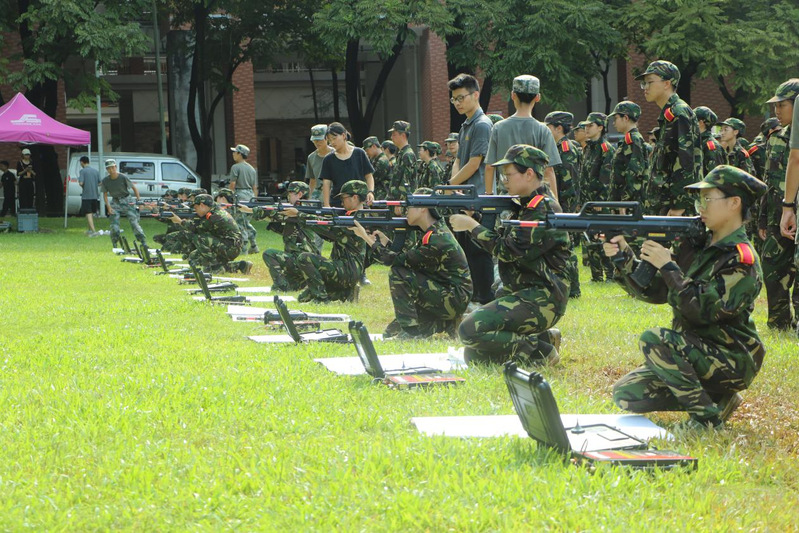 9月13日上午,我院新生齐聚教三大草坪,进行射击战术教学。教官向学员们展示并介绍枪模,亲自演示了射击动作要领,包括基本的握枪姿势、跪姿据枪和卧姿据枪等等。随后,学员们依次来到场地进行持枪射击练习,跃跃欲试的样子展示了极高的热情。同时,教官们在一旁观察学员们的动作,耐心纠正持枪的错误手法。随着一次次的扣下扳机,学员们在不断的练习中地突破自己,动作越发熟练,眼神中透露出战士般的坚毅。