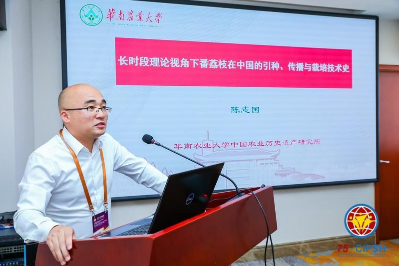 9月21日下午,我院所负责的“S8:作物、动物、农具与农业的演进:长时段视角”分论坛在中北厅举行,学院历史系科技史学科带头人王福昌教授与谢萍副教授分别主持上、下半场的会议。我院王福昌教授、魏露苓教授、陈志国副教授和谢萍副教授分别作了《“地方性知识”与“地方性时间”》《历史时期广东笔记文献中的广东柑橘类研究》《长时段理论视角下番荔枝在中国的引种、传播与栽培技术史》《红胜于绿:明以降英德地方茶叶发展史考述》的报告,研究生王思昊、郑珈泋、费雨辰、刘家振则分别以《长时段视野下宋代福州水生动物探赜——以淳熙<三山志>为考察中心》《<广东新语>中的海产资源与人类活动——从长时段视角分析》《近代潮梅地区商品性肥料的更替——兼论“长时段”的因素》《明清民国时期乌桕种植推广研究》为题作论文报告。另有来自南京农业大学的研究生曲静、徐晶,广西民族大学的研究生李岚分别作了《辩证思维下的气候变化与历史演进关系研究》《明清以来福建茶区变迁考述》《粉垄农耕技术生产力特征研究》的主题分享。倪根金教授、陈志国副教授分别围绕上、下半场的学术报告逐一提出富有针对性的点评。魏露苓教授最后总结,认为农史研究未来的发展需要靠年轻人,希望农史研究永葆青春与活力。