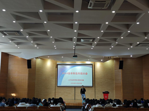 为让2024级新生更好地迎接大学生涯的第一次期末考试,实现从容备考、诚信应考,同时对本科四年做好生涯规划,抓住机遇,成就自我。12月20日上午,人文与法学学院2024级本科生年级大会在真维斯学生活动中心一楼报告厅隆重举行。本次大会由人文与法学学院辅导员刘鑫、马克思主义学院讲师李俊宏主持和分享。