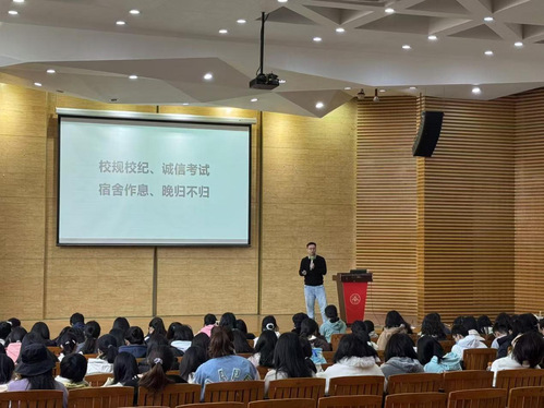 另外,刘鑫老师还呼吁同学们在大学里要养成良好的行为习惯,在日常交流中注意礼貌,措辞得体;在学习和生活上遵守校规校纪,诚信考试;同时还要规律自己的作息,避免出现晚归和不归的情况。