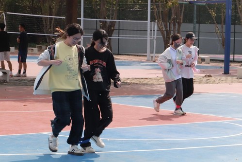 同学们积极参与各项趣味横生的比赛。两人一组的“同心并辔”项目中,选手们腿绑在一起,齐心协力向前冲刺,赛道上欢声笑语不断。