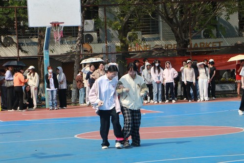 双人项目“两人三足”比赛过程中,同学们组合步伐协调一致,快速冲向终点;有的则在途中出现小插曲,绳子脱落,但他们迅速调整,重新出发,充分展现了团结协作的精神。