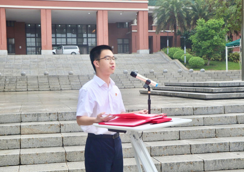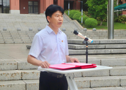 人文与法学学院党委书记陈晓东老师在国旗下讲述题为《锤炼党性担使命,砥砺初心铸担当》的微党课。他强调本次活动的重要意义,旨在强化理想信念、塑造优秀品质、坚守原则底线,勉励全体师生以更饱满的热情、更坚定的信念、更务实的作风,为党和人民的事业不懈奋斗。他提出三点殷切期望:第一,坚定信仰,做初心如磐的“追光者”,筑牢信仰根基,赓续红色血脉。鼓励同学们要把坚定理想信念作为终身课题,珍惜宝贵的大学时光,以严谨的态度对待学习,以创新的精神投身科研,以开放的姿态参与工作,以饱满的热情迎接生活。第二,锤炼品格,做严于律己的“排头兵”,在思想上、行动上先入党,以党员标准严格要求自己,淬炼党性修养,展现先锋本色,第三,坚守底线,做清正廉洁的“明白人”。要求全体同学保持清醒头脑,警惕“微腐败”思想,抵制功利主义、享乐主义诱惑,做到心有所畏、言有所戒、行有所止。