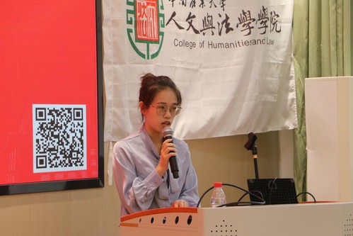 (公共管理学院学生会主席团成员梁晓敏发言)