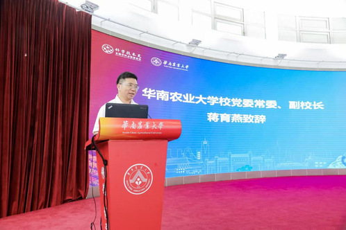 华南农业大学党委常委、副校长蒋育燕代表学校致辞,介绍了学校的办学历史、学科发展与人才培养情况,特别提到中国农业历史遗产研究所历经几代学人的努力,深耕农学史研究,立足华南,建成了具有岭南地域特色、拥有全球古农书版本收藏最丰富的古籍书库,并成为国内科技史研究的重镇。面对百年未有之大变局,他提出三点期望,一是要希望科技史学科可以肩负以史为鉴、开创未来的使命;二是要通过多学科交叉融合、人工智能与创新人才培养等议题讨论,推动构建具有中国特色、中国风格、中国气派的科学技术史学科体系、学术体系以及话语体系;三是希望与会学者围绕主题畅所欲言,为推进中国科技史学科高质量发展建言献策。