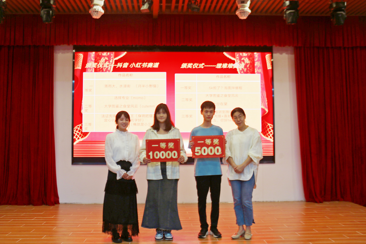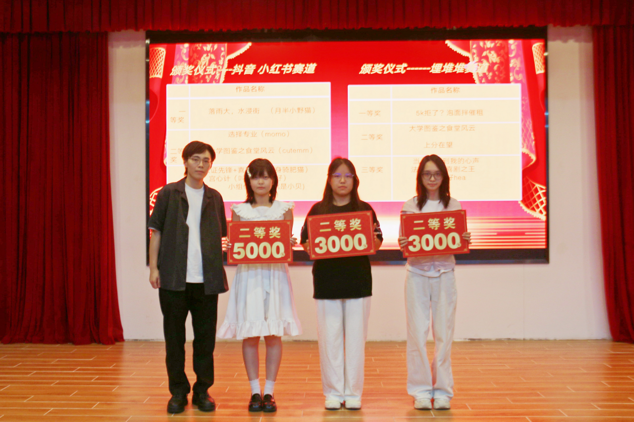 紧接着典礼进入颁奖环节,吴晓慧女士、肖蕙副书记及各位老师分别为获奖的小组和优秀学员颁发奖金奖品,其后优秀学员代表林盈盈、林梦琪以及优秀小组代表骆海茵依次向大家分享她们的创作历程——从灵感迸发到挑战突破,从团队协作到文化共鸣,同时由衷感谢TVBC提供的实战平台与学院老师的悉心指导,坦言这段经历既是挑战亦是成长蜕变。为活跃现场氛围,大会穿插趣味知识抢答与抽奖环节。由TVBC赞助的影视文创周边、埋堆堆平台年卡及充电宝等礼品,引得同学们踊跃参与,笑声掌声不断,将现场气氛推向顶点。