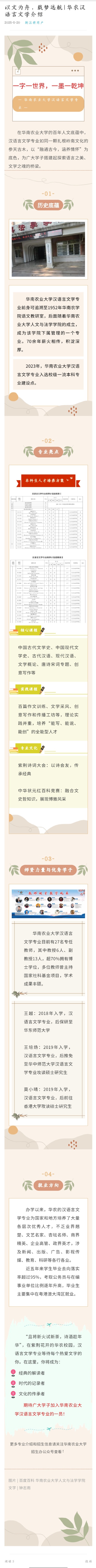 1、作品名称:《以文为舟,载梦远航 | 华农汉语言文学介绍》
