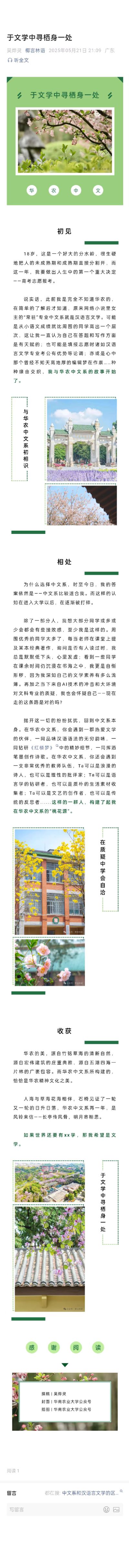 为了在高考招生中积极宣传我院,提高2025年招生工作质量,激发我院学生爱学院、爱专业的创作热情,发掘能够体现华南农业大学人文与法学学院专业特色的优秀文化作品,华南农业大学人文与法学学院党委信息中心于2025年4月17日至5月12日面向学院全体学生举办了人文与法学学院2025年“我爱我校,我爱我专业”主题作品征集活动,以下为汉语言文学专业应征作品展示。