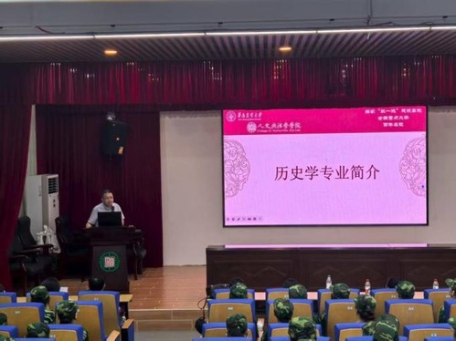随后,历史系教工党支部书记杨品优系统介绍了我校历史系的发展沿革。通过详实的数据和生动的案例,杨老师从办学历史、学科实力及师资力量三个维度展现了院系建设成果,并介绍了我系的人才培养目标与课程。在介绍毕业去向环节,杨老师展示了部分优秀毕业生在基础教育、文化传播、继续深造等领域的突出表现,为新生勾勒出清晰的发展图景。