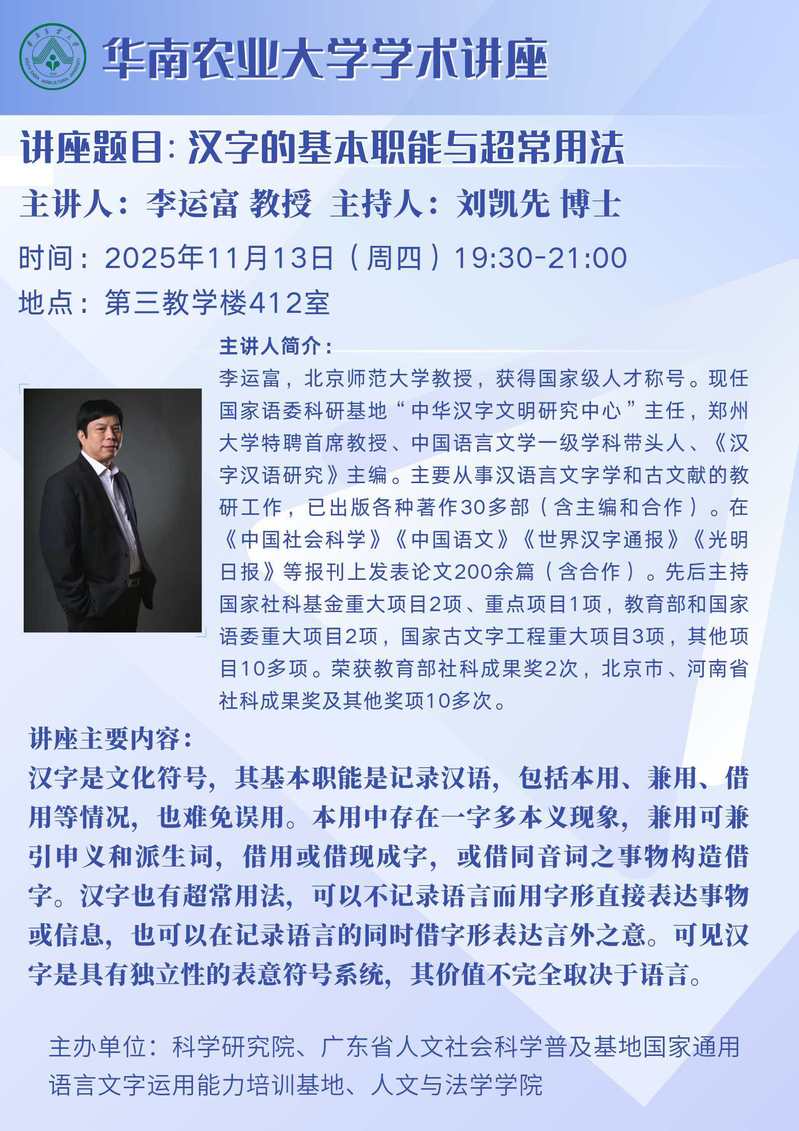 学术讲座:汉字的基本职能与超常用法