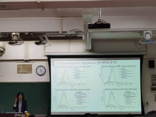 同时,刘美君教授带领台下师生了解新词用法,不断抛出问题引发思考,鼓励师生研究以语料库为本。刘教授比较自己2009年至今的三次语料分析,指出其中的变化趋势,引出姿态动词与具身性认识的概念,让在场师生对新词产生有了更科学规范的了解。刘教授在尝试众多大模型后,最终选择SIR模型与Model模型,用于找出高频新词,并预测新词消亡时间,得出传统字义长于新兴义的结论。同时,刘美君教授也指出,大语言模型仍存在缺少解释性、忽略语言学特征等缺陷。