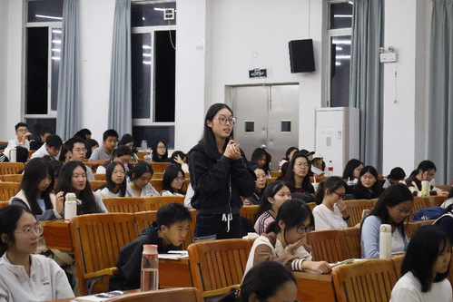 在讲座的师生交流环节,李教授对自己在汉字方面的理解作出阐释。他认为“汉字只是记录的工具”这一观点有失偏颇。在确保汉字使用标准化、规范化的前提下,他期望能够结合生活实际灵活运用汉字,更大程度地激发汉字的人文属性。同时,他希望大一新生能够培养学习汉字的兴趣,使学习变得既有趣又实用。李教授的发言让现场师生深受启发。