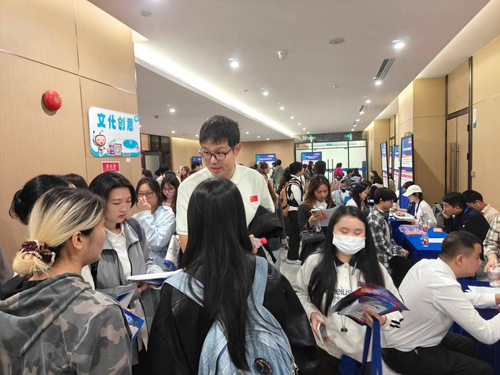 在招聘会现场,年级辅导员全程陪同,细致了解企业招聘需求、岗位要求及发展前景,与企业招聘负责人深入沟通,为学生搭建沟通桥梁;耐心为学生答疑解惑,指导学生合理选择岗位、高效投递简历,鼓励学生自信展现专业素养与综合能力。同学们精神饱满、积极踊跃,在多家影视传媒、科技公司展位前排起了长队,展现出扎实的专业素养和积极的求职态度。