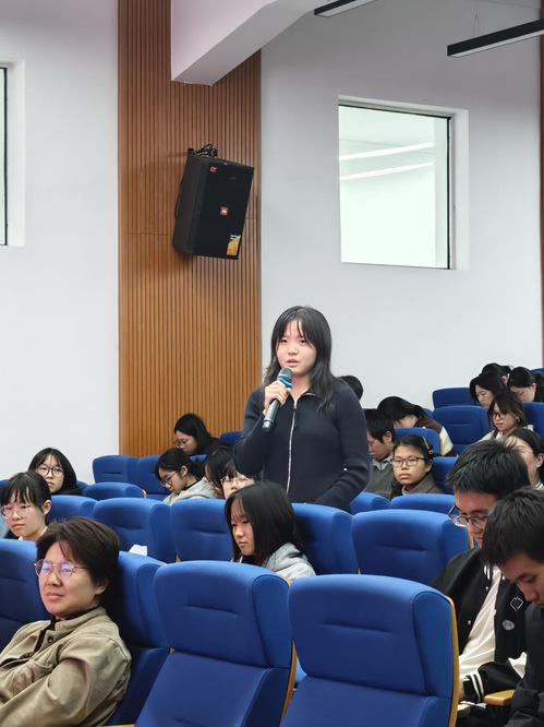 在师生交流环节,贺仲明教授仔细解答同学们关于“阅读更应趋向功利性还是更应趋向趣味性?”“阅读到写作的过程是怎么发生的?”“非学术性的名著推荐读几遍?”的疑问,他建议同学们写下心中感想,根据自己的兴趣进行精读,找到功利与消遣的阅读平衡点。