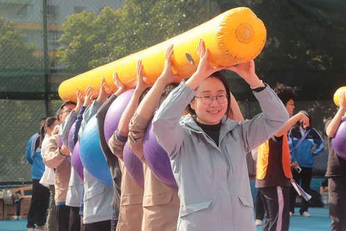 开幕式结束后,趣味运动会赛事正式拉开帷幕。学院工会根据赛事规则,选派多名教师组成参赛队伍,在投掷乾坤、遇河搭桥、蛟龙出海、薪火相传、力拔山河等多个项目中展开角逐。在各个项目的比赛中,队员们齐心协力,团结写作,彼此鼓劲打气,在赛场留下了团结拼搏的身影,展现了人文与法学学院教职工的风采。