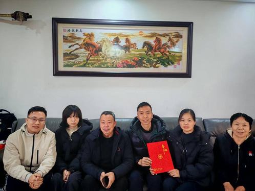 冬日暖阳,情满家门。为进一步深化家校协同育人机制,将学院的认可与关怀精准送达家庭,搭建家校同心、共育成长的温情桥梁。1月5日上午,人文与法学学院辅导员张淋茜与刘鑫老师前往佛山市狮山镇,向国家奖学金获得者——23级中国史专业卢嘉君同学及24级法学6班漆嘉琳同学的家长送达喜报,开展了一次温馨而深刻的“送喜上门”行动。