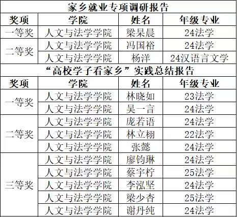 依照人文与法学学院关于开展2026年春节返家乡“强实践、促就业”活动通知的相关要求,经学生个人自主申请与学院评委老师综合评审,现将人文与法学学院2026年春节返家乡“强实践、促就业”活动获奖同学名单公示如下: