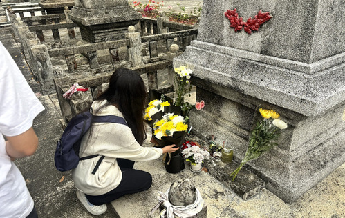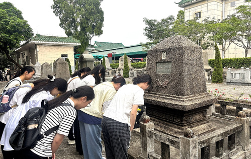 随后,在萧红烈士墓前,团委工作人员组织全体学员举行庄重的献花仪式。学员们整齐列队、神情肃穆,向萧红烈士敬献献花并鞠躬致敬,表达对这位著名作家与进步知识分子的深切追思与崇高敬意。在静默的追忆中,学员们更加深刻地体悟到革命先辈以笔为枪、矢志报国的赤诚情怀和坚定信念。追悼完成后,学员们表示,要以萧红烈士为代表的文艺工作者为榜样,继承和发扬爱国精神,在青春征途上勇担时代责任、奋发有为,将个人理想融入国家发展的蓝图。