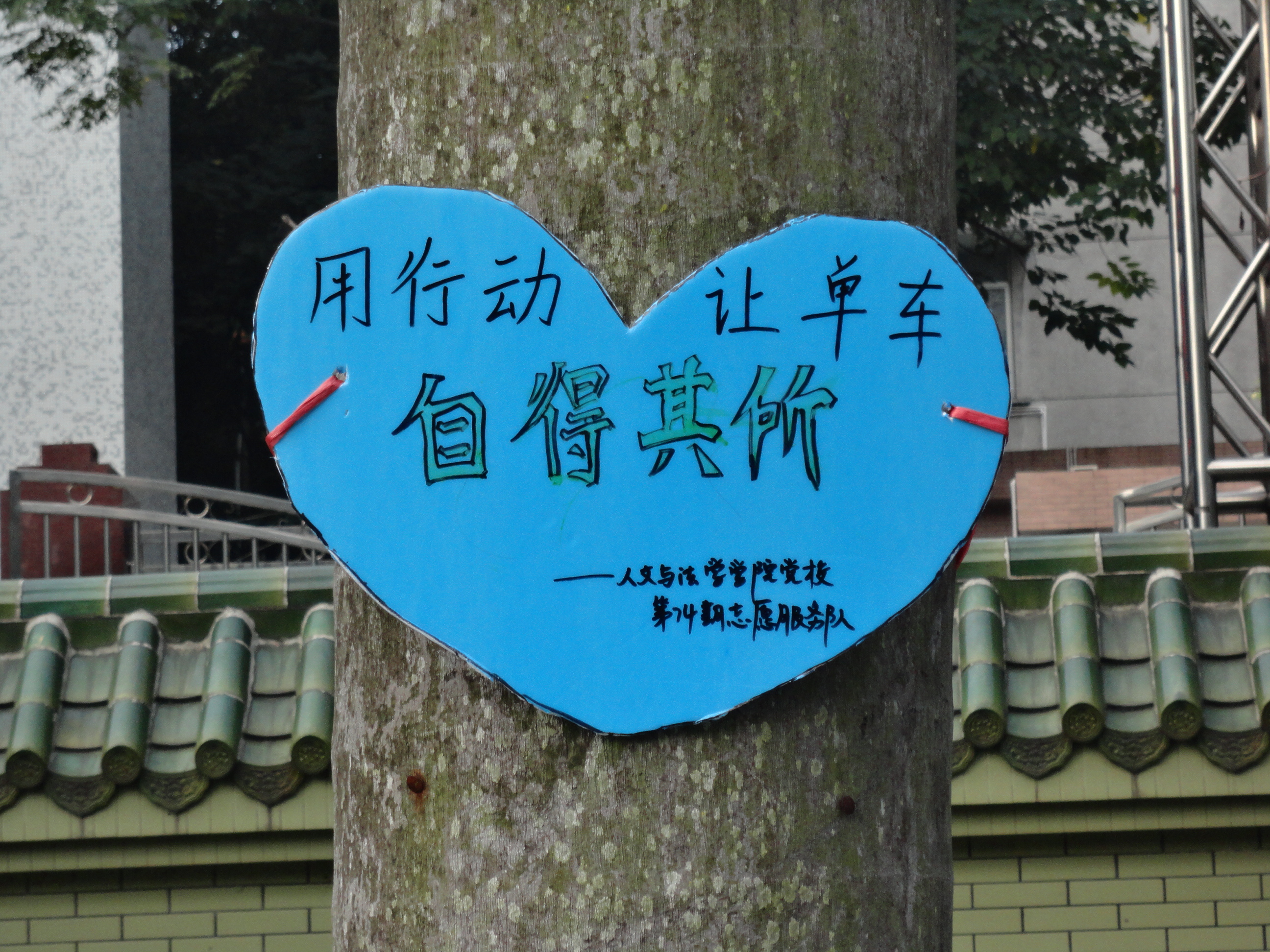 活动伊始,我院党务工作部组织人手在微博上进行了宣传号召,并在服务地点张挂了一些温馨提示。活动中,志愿者们积极参与:指引停车、摆放单车、提供打气,大家热情高涨。据了解,本次志愿活动在学生群众中的反响相当不错,许多人对志愿者们赞不绝口。