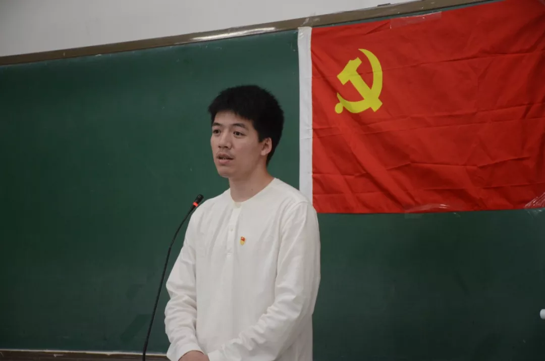 在激昂澎湃的国际歌过后,施煜老师上台致辞。首先,他代表学院党委祝贺学员们通过重重考核,从积极分子成功成为发展对象,并提问:当你得知你成功通过考核,成为发展对象,你的心情是怎么样的,你怎么看待这一身份的转变。他认为积极分子到发展对象身份的转变,意味着要接受更多的监督,承担更多的责任。因此,他希望学员们能重新审视自己的信念和政治立场,坚定入党动机,用心做好每一件事。