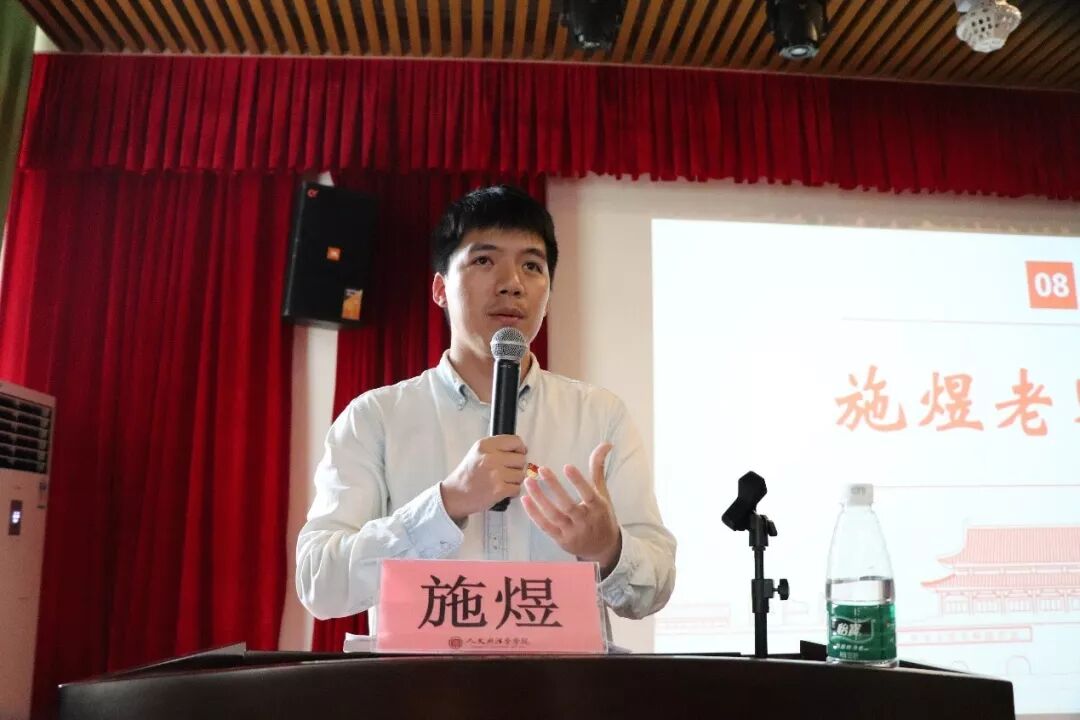 最后,人文与法学学院党务工作室指导老师施煜致辞。他希望学员们不忘初心,端正入党动机,提高政治站位,不断加深对党的了解;希望学员们保持求知的热情,努力做到自觉、自律、自立”;希望学员们要时刻自觉遵守纪律,持之以恒地以一个入党积极分子甚至是党员的标准要求自己,在正确的时间做正确的事;希望学员们一直保持青春大学生昂扬的精神状态,在社区、课堂、宿舍等发挥先锋模范作用,不断地锻炼提高自己的能力,向党组织靠拢。