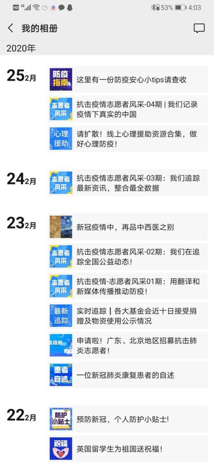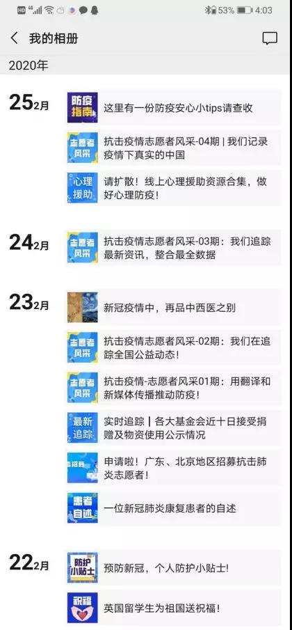 在抗击疫情期间,我报名成为了世青创新中心的抗击疫情项目倡导志愿者,主要工作是协助专业志愿者,将中心的一些关于疫情原创推文,通过朋友圈和微博的形式,转发让更多的人了解和认识。