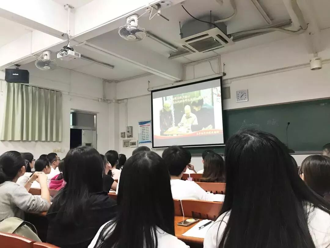 最后,全体学生党员共同观看了诗朗诵《大爱芬芳》,共同致敬卢永根老校长。