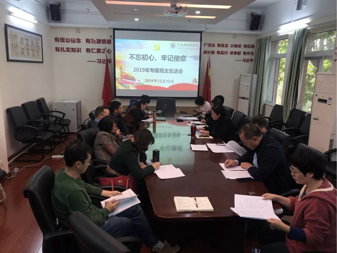 根据“不忘初心、牢记使命”主题教育的工作安排,人文与法学学院高度重视,积极部署,12月13日下午在院楼304会议室召开2019年度“不忘初心、牢记使命”专题民主生活会,针对在“不忘初心、牢记使命”主题教育中存在的问题,开展批评和自我批评,进行检视整改。会议由院党委书记张晖主持,学院党委委员、各系主任、教工党支部书记、工会主席、院长助理,办公室主任和党委组织员等参加本次会议。