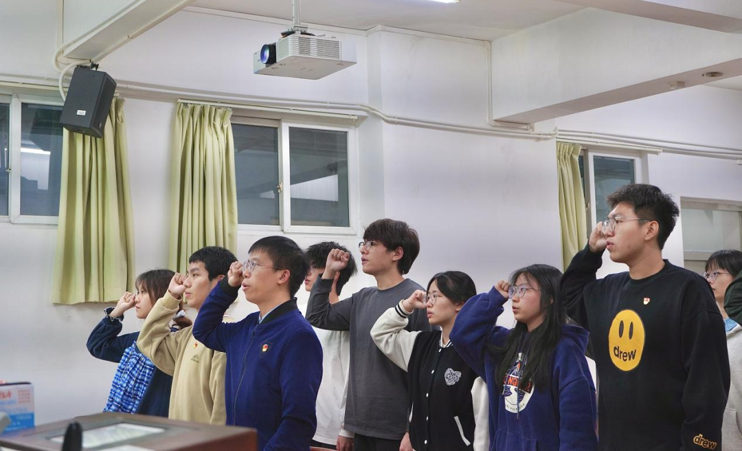 会议第二项,挂钩党员宣读群众调查意见,根据群众的反馈指出了各发展对象的优点和存在的不足。同时经过与会成员的充分讨论,也给予了8名发展对象一些具有建设性和针对性建议。随后,17名正式党员经无记名投票表决一致同意李昶龙、马超杰、黄天娇、袁圆、刘颖华、肖泳衡、曾可儿、曾怡芬8名同志转为预备党员。最后,支部党员代表林立栩同志带领全体党员庄严宣誓。重温入党誓词,激励各位预备党员以更昂扬的姿态迎接政治生活的新考验。