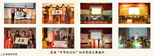“中华状元红”知识竞技大赛作为一个集文学、历史、法律、时政、哲学、地方文化特色等综合知识于一体的知识竞技大赛,旨在以喜闻乐见的形式引导广大青年学生亲身体验中华优秀传统文化的独特魅力。“中华状元红”已在华南农业大学走过十一个春秋,活动参赛人数高达6000余人。本活动坚持走出去、请进来,曾联合华南理工大学、暨南大学等知名高校共同举办跨校竞赛。
