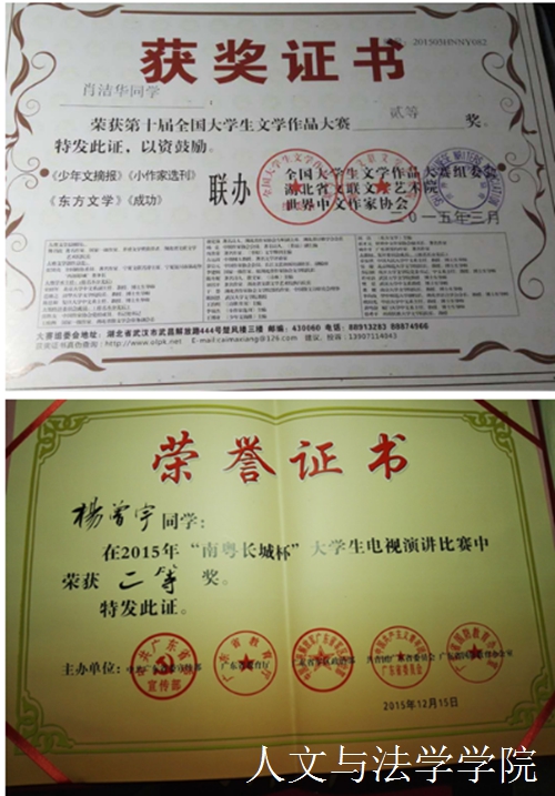 此外,学院积极组织、鼓励学生参加各类专业技能大赛,并取得较好成绩。学生在全国大学生作文比赛、全国大学生口述史大赛、广东省演讲比赛、广东省辩论赛、广州大学生戏剧节等大型比赛中脱颖而出。
