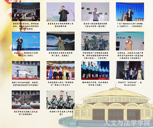2017年4月7日,在华南农业大学校党委宣传部、学生工作部(处)等有关部处的指导下,人文与法学学院承办的“树理想、重品行、守纪律”主题教育活动之第四届紫荆华农诗词大会顺利举办。活动征集到诗词作品500多份,其中学生作品400多份,教职工、校友及学生家长作品100多份。我校蒋育燕总会计师百忙之中亦不忘写诗,带头投稿,张贻发、姜峰、黄新荣、王瑛、唐元平、周正、范碧鸿、文晓巍、谢韩、林华、陈逵晓、杨新军、张宣宣等老师也向大会投来了多篇作品,使得本次大会的作品质量得到大幅度的提高。晚会当晚,杨克、游渊、朱子庆、牧言、谢海衡、郭勤亮、彭嘉志等知名诗人、主持人、朗诵家亲临现场,与华农师生同台演出,与广大诗词爱好者共同畅游于诗的海洋,带领华农师生共同品味紫荆校园里的诗韵雅情。