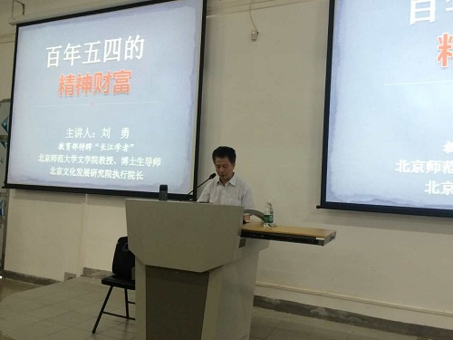 5月9日上午,长江学者刘勇教授应邀莅临我院7号楼101讲授“百年五四的精神财富”系列讲座,杨乃良院长、中文系多位老师出席了本次讲座,现场座无虚席。本次讲座开场由杨乃良院长致词。