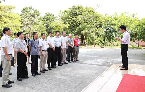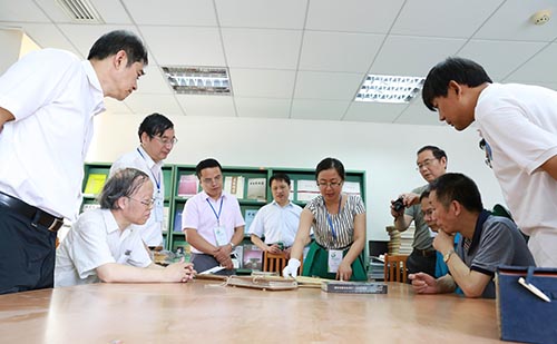 领导、学者在观看珍贵古籍