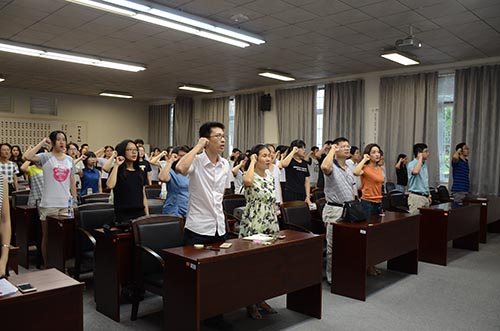 “我志愿加入中国共产党,拥护党的纲领,遵守党的章程”,全体党员们重温了入党誓词,洪亮的誓言彰显出全体党员们为党的事业奋斗终生的决心和毅力,心中也深深感受到荣誉感和使命感。
