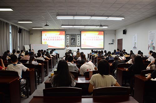 为庆祝中国共产党建党95周年,回顾党的光辉历程,讴歌党的丰功伟绩。6月29日,人文与法学学院在院楼115举行庆祝中国共产党建党95周年活动,各学生党支部结合“两学一做”学习教育,分享学习习总系列讲话精神。学院党政领导班子、全体辅导员、120余名学生党员参加了本次活动。