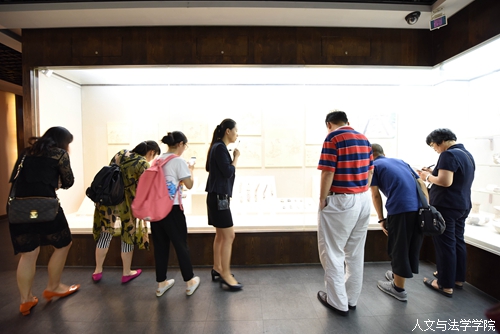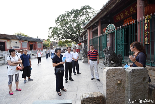 餐后,调研组又兵分二路,倪根金教授率由魏露苓教授、赵艳萍副教授、吴理清博士及研究生组成的第一组参观了东莞博物馆,观看了“古代东莞”“流行海外的广东制造——东莞市博物馆藏清代外销艺术品展”等陈列。赶往茶山镇,在镇党委香兆明委员、镇农林水务办张银崧主任等陪同下,考察了中国历史文化名村、全国重点文物保护单位南社明清古村落,全村现存古宅二百多间,类型之多,广东少有,充分体现了血缘为纽带的守法文化、农耕文化和民俗文化。最后驱车石排镇,在镇农林水务办王锦浩主任等陪同下,考察了中国历史文化名村、全国重点文物保护单位塘尾古村,重点了解了其民居与书室结合、民居与祠堂结合的传统村落布局特点。历史系副主任赵飞副教授率由关溪莹副教授、杨品优副教授、朱嫦巧讲师、陈志国讲师及研究生、本科生组成的第二组先后考察了寮步镇横坑古村、沙田镇沙田水文化展览馆。横坑古村的钟氏祠堂为市级保护文物,横丽湖畔有10多株树龄超过500年的一级古树。沙田水文化展览则系统展示了深厚的地方疍民文化。调查间隙,调查组还赶赴虎门镇一处难得一见的民间作坊,为岭南文化遗产保护实验室购买了一艘体现地方疍民文化的模型船。