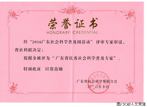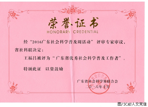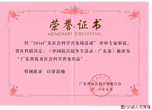 十月九日,广东省社会科学界联合会发布了《关于2016年度广东省社会科学普及工作的表彰决定》,我院倪根金教授、杜国明教授荣获“广东省优秀社会科学普及专家”奖,王福昌荣获“广东省优秀社会科学普及工作者”奖,倪根金、王福昌、魏露苓编著的《中国抗日战争全景录•广东卷》荣获“广东省优秀社会科学普及作品”奖。